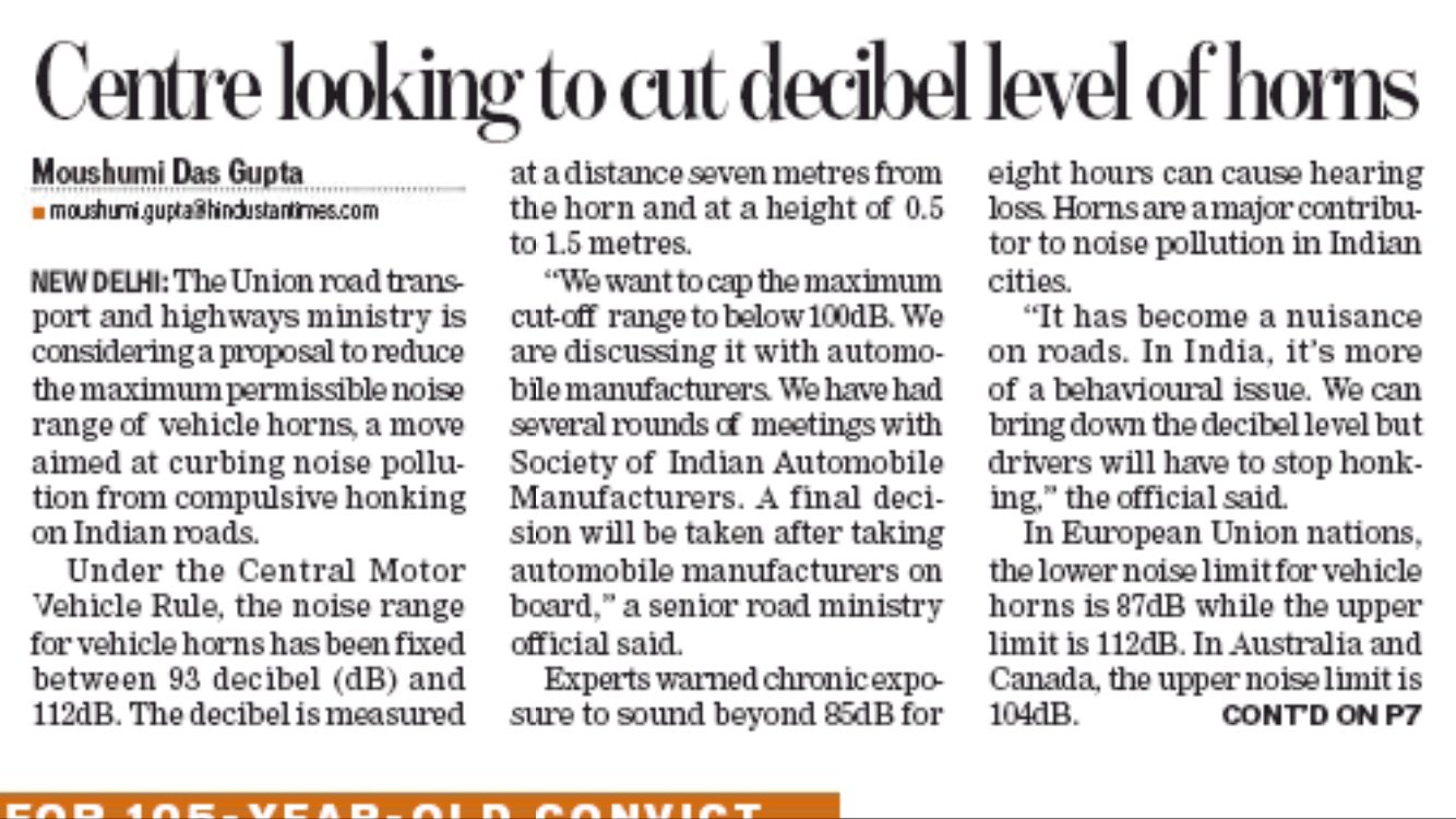 हॉर्न ध्वनि-तीव्रता कम करना ठीक है पर सोचने की बात है कि हमें हॉर्न बजाने की जरुरत क्यों है?